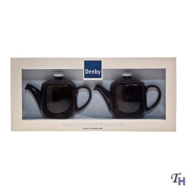 DENBY JET BLACK MINI TEAPOT SALT& PEPPER SHAKER SET