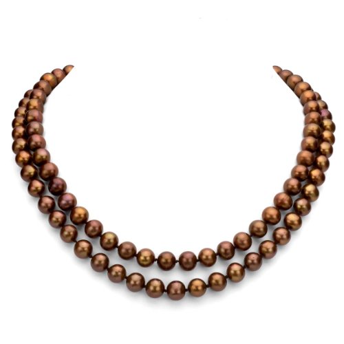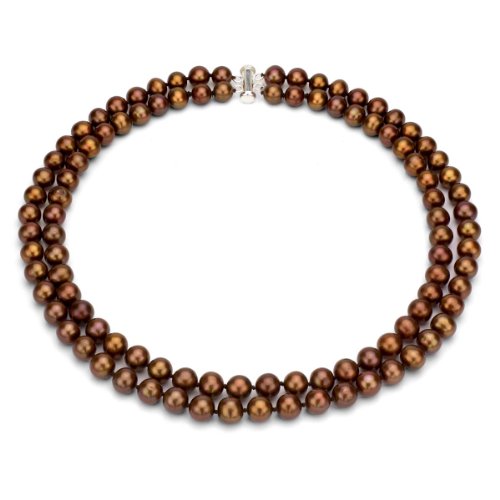 A Beautiful and Elegant Sterling Silver 2-rows 8-8.5mm Dyed-brown Freshwater Cultured High Luster Pearl Necklace 17" Length. This necklace is hand-knotted, and secured with tube-clasp. We Carry Different Color of Pearls, Different Size Per Pearls, Different Length, Different Pearl Type, and Different Clasps. Please Contact Us for Detail if You Did not See What You Want.