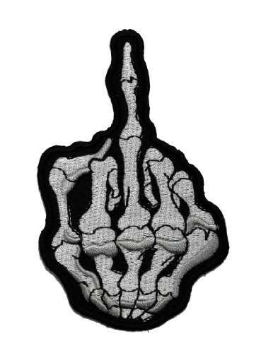 Skeleton Bone Middle Finger Biker Punk Chopper Rock DIY Applique Embroidered Sew Iron on Patch MF-001