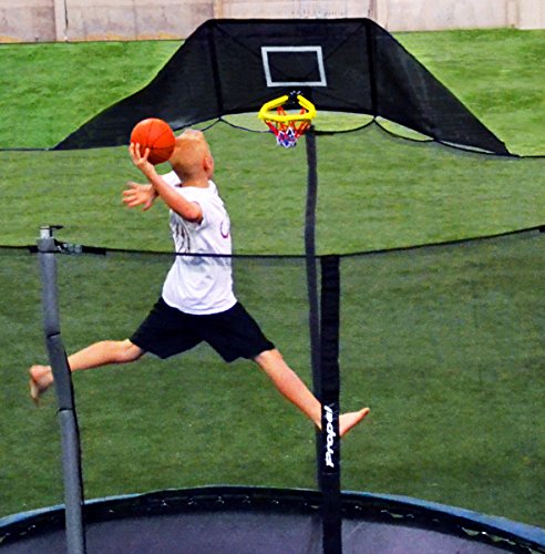 The Propel Trampoline Jump-N-Jam Basketball Hoop features: 10 Inch Safety-Flex Rim Sturdy Backboard Promotes Coordination and Exercise "Slam-Dunk" with Ease Ball & Pump Included Attaches to Enclosure and Enclosre Pole Designed specifically to fit Kinetic and Propel Trampolines.