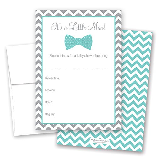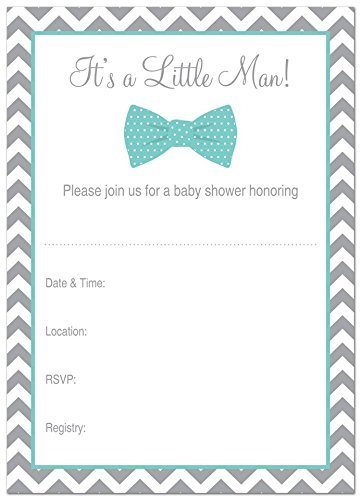 24 Cnt Little Man Bow Tie Fill-in Baby Shower Invitations (Teal)