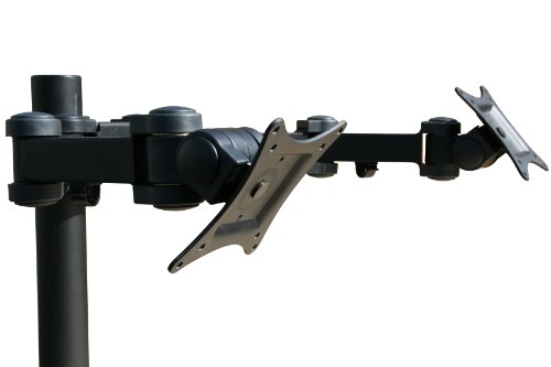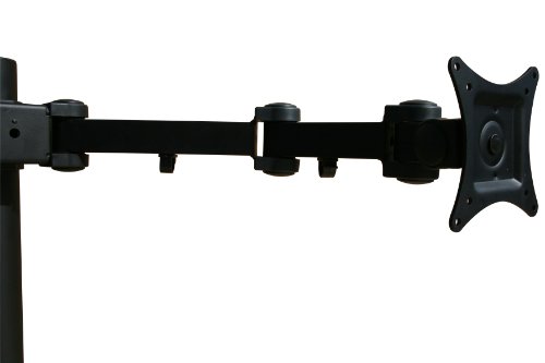 - Feature : Fits most flat panel monitors from 13" to 24". Please note, 3 x 24" monitor in landscape mode may not fit. Supports up to 22 lbs per monitor. / Height adjustable. Single arm can articulate in three different locations for best positioning. / Tilt: +/- 15 degrees, Swivel: 360 degrees, Rotate: 360 degrees / VESA mounting pattern: 75 x 75 or 100 x 100 / Heavy duty "C" clamp integrated double lock ensures stable mounting onto the desk.