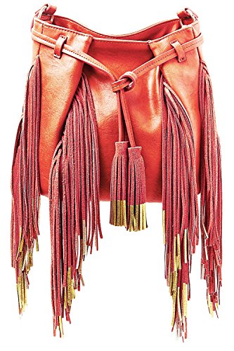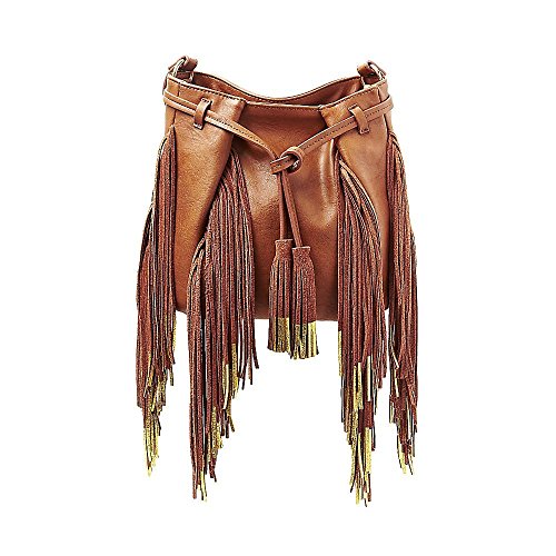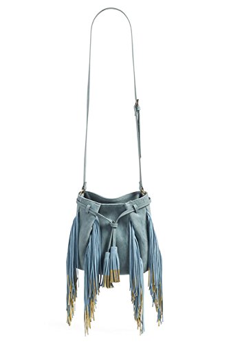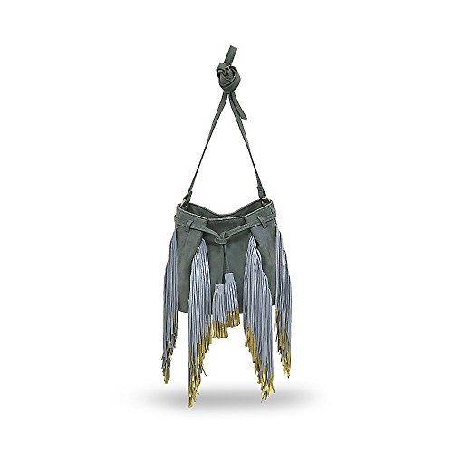 The BARBEY is a trendy bucket bag with a luxe touch. This cool, crossbody bag features gold-dipped fringe that adds a playful touch to any outfit. BEFORE PURCHASING, PLEASE COMPARE THE SIZE OF THIS HANDBAG TO ONE OF YOUR OWN FAVORITE BAGS.Feature