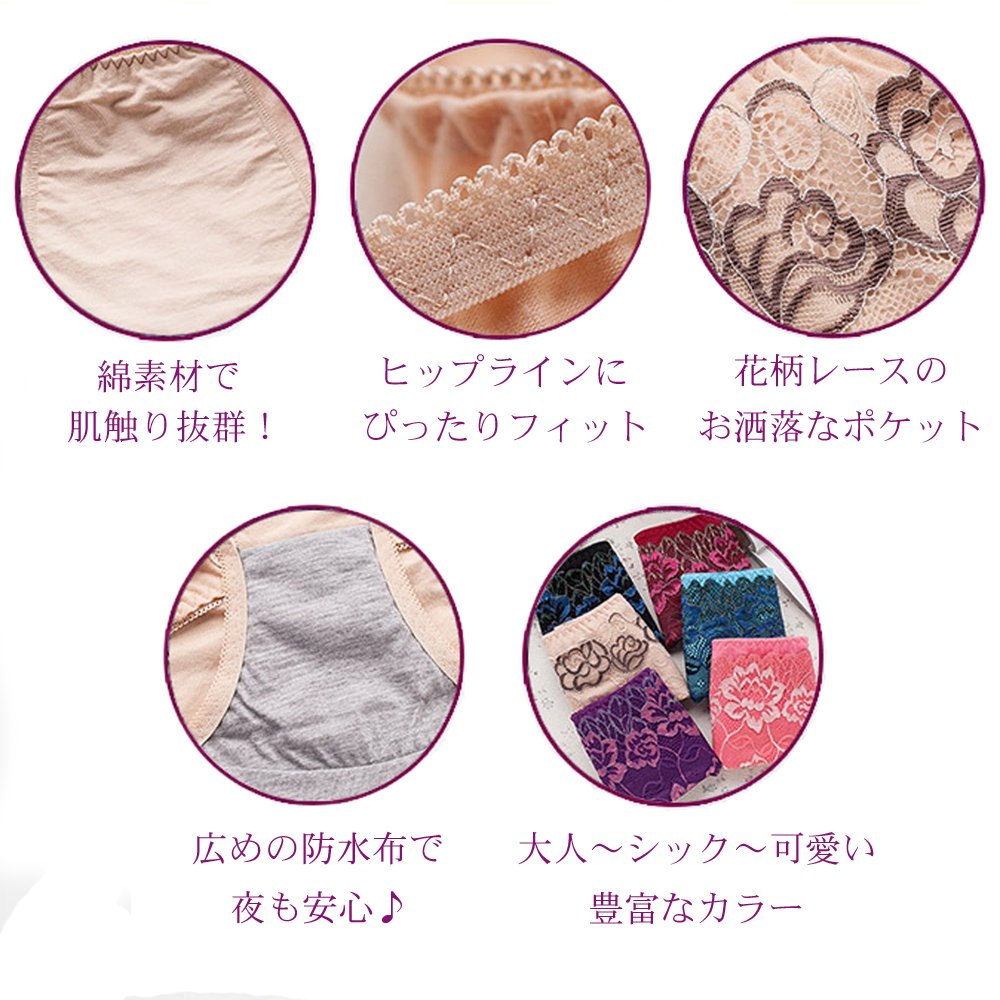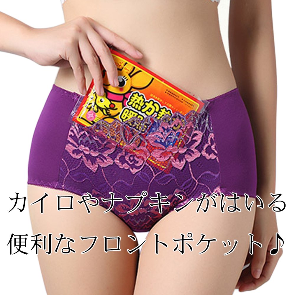 Flower pattern lace at the front part is a pocket, so it is convenient to put a warmer and warm your stomach and put a spare napkin.
