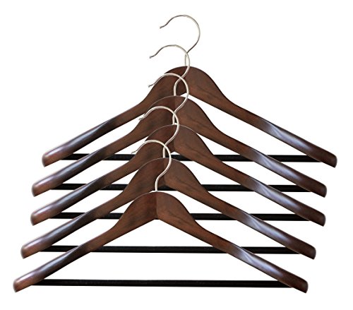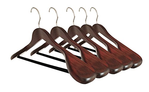 -. Binding : Kitchen -. Brand : BC Footwear -. Color : Brown -. EAN : 0638037993462 -. Feature : LUXURY HANGERS: Set of 5 high-end hangers feature a solid wood construction and smooth dark brown finish. / NON-SLIP VELVET WRAPPED BAR: You won't find cheap plastic or rubber on these hangers! Each hanger features a 16 inch long solid wood bar wrapped in luxurious black velvet that keeps clothes from slipping and snagging. / EXTRA-STRENGTH: Instead of using cheap and flimsy nails or glue to hold them together, these hangers are assembled with heavy duty screws supporting even the heaviest of coats or suits. / ANTI-RUST 360° ROTATING HOOK: Each hanger in this set of five features a metal hook that won't rust and that swivels a full 360° making them versatile and easy to hang. / EXTRA-WIDE SHOULDERS: Wider shoulders on the hangers prevent clothes from slipping off and help them retain their shape. If you're not happy with your purchase we promise to make it right and go above and beyond. Customer satisfaction is our #1 P.R.Iority. -. IsAutographed : 0 -. Label : B&C Home Goods -. Manufacturer : B&C Home Goods -. MPN : 11 -. PartNumber : 11 -. ProductGroup : Home -. ProductTypeName : HOME -. Publisher : B&C Home Goods -. Studio : B&C Home Goods -. Title : Set of 5 Luxury Wooden Suit Hangers - Extra Wide Wood Hangers with Velvet Bar for Coats and Pants -. UPC : 638037993462