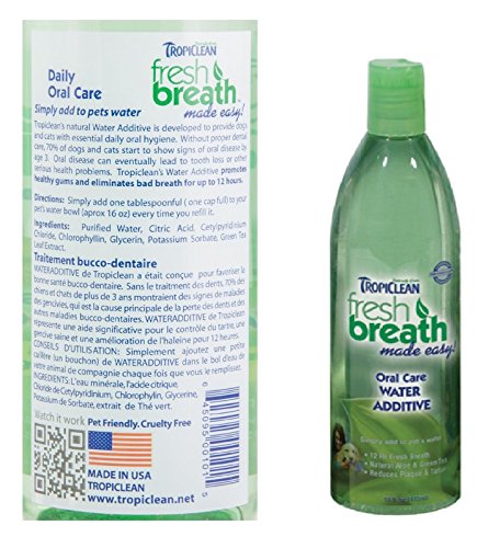 -. Feature : Dog Size:Any, Small, Medium, Large, Brand:TropiClean, Type:Water Additive, Model:Dog Water Dental Supplement / Mpn:PETC1015, Purpose:Oral Health, Formulation:Liquid, Sizes:16 oz, 33.8 oz / Country/Region Of Manufacture:United States, Life Stage:Puppy, Adult, Senior, Bundle Listing:Yes