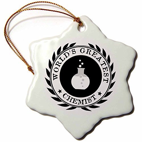 3dRose orn_164892_1 Worlds Greatest Chemist-Chemistry Job Pride-Black Badge Graphic-Snowflake Ornament, Porcelain, 3-Inch