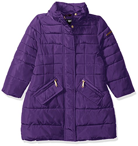 Polyester filled bubble coat has storm flap over zipper to keep you warm