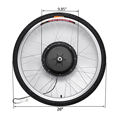 Max speed: 35 KM/H 1. Material: Aluminium Alloy PVC Stainless Steel Spoke 2. Motor Power: 500W/36V 3. Wheel Type: Front (Includes Tire) 4. Wheel Diameter: 26" / 66cm 5. Motor Diameter: 9.64" / 24.5cm 6. Brake: with 172cm Power Cord 7. Twist Throttle: with Power Indicator 8. Controller Bag Dimensions: About(10.63 x 4.72 x 2.36)" / (27 x 12 x 6)cm (L x W x H) 9. Net Weight: 23 lbs / 10.4kg