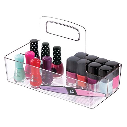 mDesign Bathroom Vanity Cabinet Cosmetic Organizer Tote with Handle - Divided, Clear
