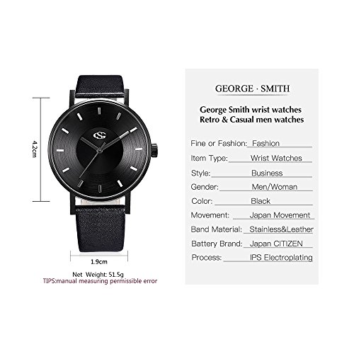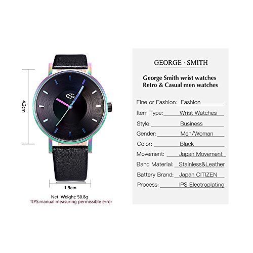 -. Title : GEORGE SMITH Unisex Unique Analog Quartz Waterproof Business Casual Leather Band Wrist Watch with Fashion