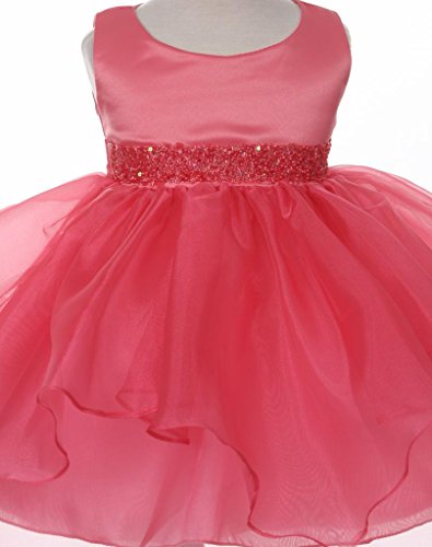 -. Feature : MADE IN USA / Satin top with organza layered skirt dress. / Waistline decorated with glittering beads. / Lovely dress for Easter, birthday, or other special occasions!