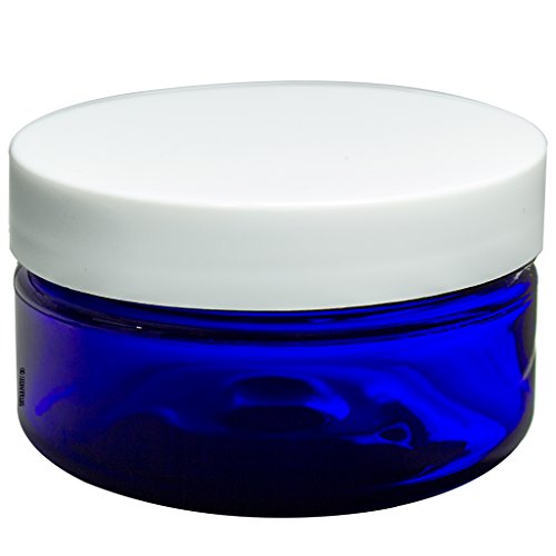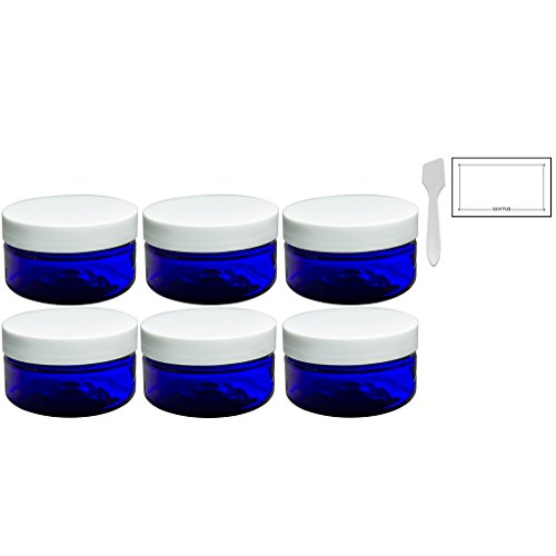 Cobalt Blue Heavy Wall Plastic (BPA Free) Refillable Low Profile Jar with White Lid - 2 oz (6 pack) + Spatulas and Labels