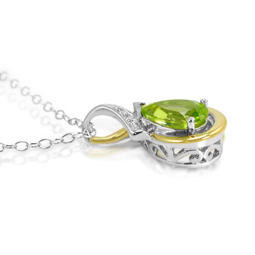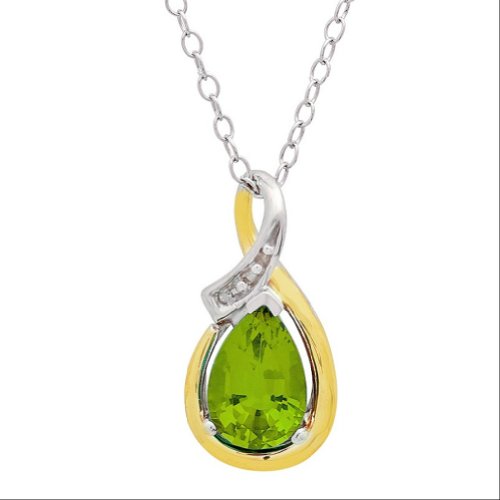 - Title : Sterling Silver and 10K Gold Peridot and Diamond Pendant (1ct tw)