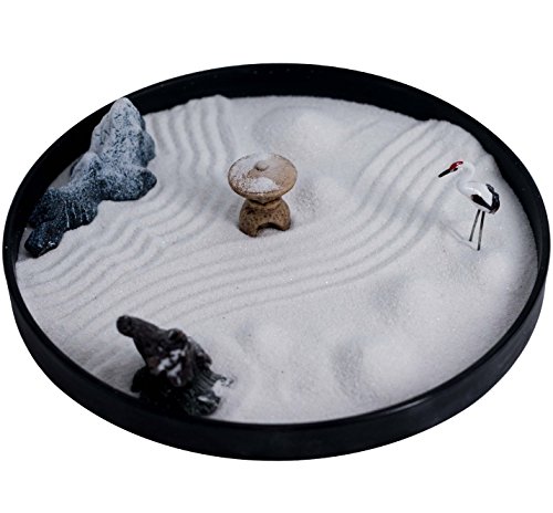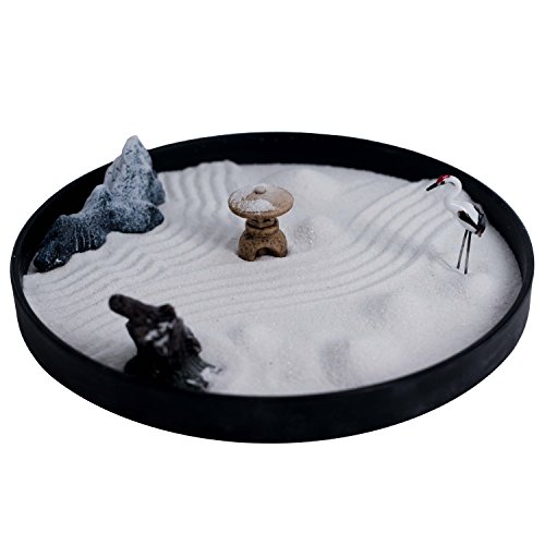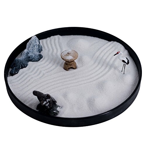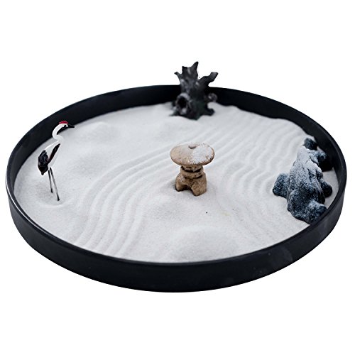 ICNBUYS Zen Garden Crane Snow Mountain Japanese Censers Set with Free Rake and Pushing Sand Pen Base Tray Diameter 9.4 inches