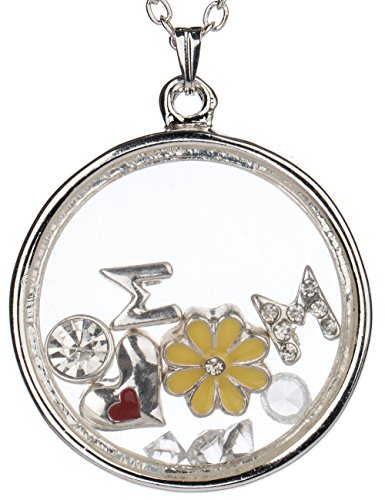 An elegant arrangement of charms in a floating locket necklace. The charms consist of two M's for MOM and a Crystal O. Finished with a lovely epoxy coated flower and crystals. Jewelry Nexus is dedicated to introducing jewelry that fits the lifestyle of today's woman. Quality product and first-class customer service have contributed to our reputation. Jewelry Care Instructions: Don't wear your jewelry to bed. Please store your jewelry in a protective container and keep away from sunlight and moisture. For mild cleaning please use a Silver Polishing Cloth.Feature