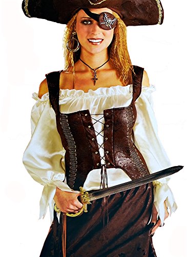 -. Brand : Rubie's -. Color : Brown -. Department : womens -. Feature : Standard (Fits Up To Dress Size 12) / Sword, Hat, Shirt, Accessories not included. / 100% Polyester -. ProductGroup : Apparel -. ProductTypeName : ADULT_COSTUME -. Size : Standard -. Title : Renaissance Pirate Womens Vest -. UPC : 082686064521