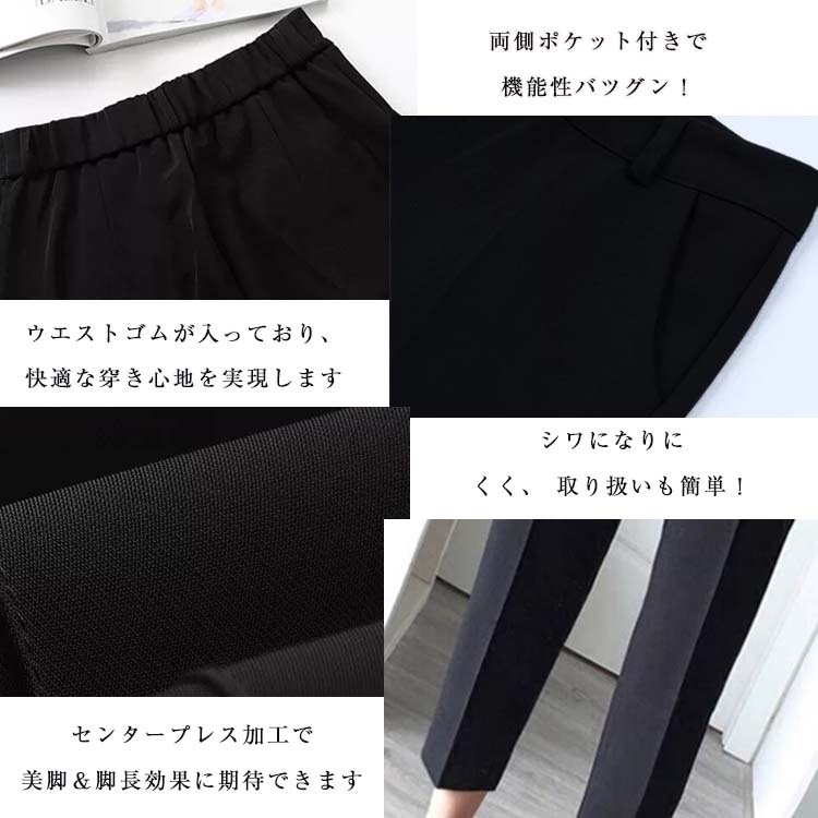 | オールシーズン対応!アクティブに働くOLさんにおすすめパンツ。足首を魅せるアンクル丈は、シャツやカットソーと合わせるだけで簡単にお洒落でこなれ感のあるコーデに! センタープレス加工で美脚&脚長効果に期待できます。オフィスにリクルート、通勤などなど。フォーマルなシーンにしっかり対応してくれるキレイめパンツ! | |