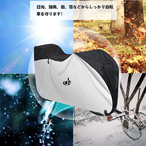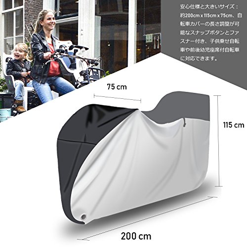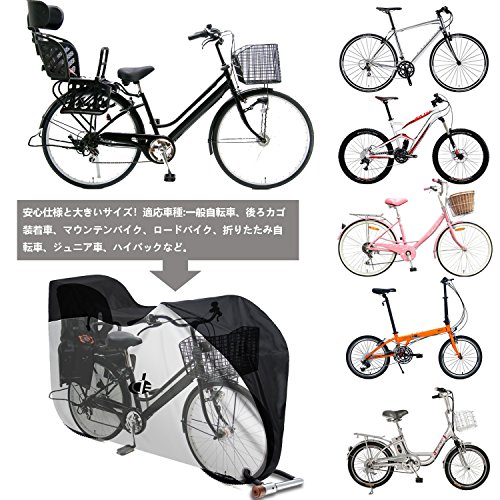 - カバー寸法:約200cm x 115cm x 75cm適応車種: 子供乗せ自転車、一般自転車、後ろカゴ装着車、マウンテンバイク、ロードバイク、折りたたみ自転車、ジュニア車、ハイバック、20から29インチまでの自転車対応できます。大きめのサイズですが自転車の全体を被せられないタイプもありますので、サイズをご確認の上ご購入ください。