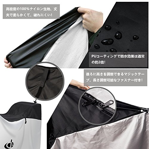 - 防水のファスナーで高さを調節ができます!対応可能な車種も広くなっています。29インチまでの自転車また27インチのバイクに対応可能!