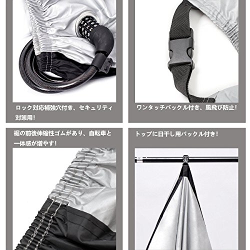- 前輪にはロック対応補強穴が2つあります、様々なロックにマッチできます、カバーと自転車の一体感が増やすことができます。それに、風で飛ばされることなく、盗難対策もバッチリです。