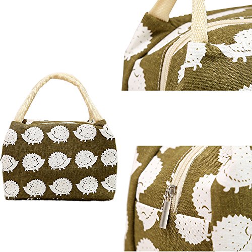 YYSHOW Insulated Cool Bag Cute Canvas Lunch Bags For Women, Kids, Girls (Hedgehog Print(zipper))
