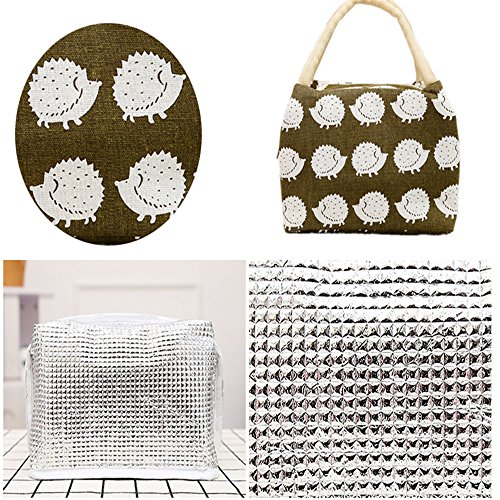 - HIGH QUALITY MATERIAL:Canvas, It's safety for pack your food and drink. Air permeability bacteriostat flax fabric and water resistance layer. Comfortable double dilated handle, Inside the foil material has good heated retention and preservation.