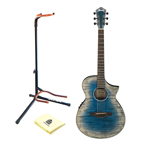Ibanez AEWC32FM Thinline Acoustic-Electric Guitar in Blue Burst with Stand and Zorro Sounds Guitar Polishing Cloth AEWC32FM Thinline Acoustic-Electric Guitar Blue Burst As an industry leader in the use of exotic tonewoods, Ibanez continues to innovate with their AEW series. This fresh approach merges a classic spruce top with an elegant exotic tonewood back and sides. The thinner, amplification-friendly body of these acoustic/electrics make them the perfect choice for gigging singer-songwriters. A "soft" Florentine cutaway provides easy accessibility all the way to the 17th fret. The Fishman pickup and Ibanez AEQ-SP2 Preamp deliver excellent reproduction and control of tonal characteristics and easy operation, while 1/4 in. and XLR outputs give you options for a variety of direct plug-in applications. The exotic tonewoods give each respective model a distinctive tone and appearance that will garner attention and inspire the imagination. Let yourself be captured by the grandeur of the AEW Series.The AEWC32FM from Ibanez offers you grace, durability and versatility. The mahogany neck, back and sides merge with a flame maple top for a tonality that is warm with the right amount of sparkle. The onboard Fishman Sonicore pickup with top-mounted AEQ210TF preamp/tuner and two-band EQ lets you easily translate your sound for the stage.Includes Ultra 2445BK Basic Guitar Stand-Whether you own an Electric Guitar, an Acoustic Guitar, or a Bass Guitar, the Ultra 2445BK Guitar Stand will fit your needs! It features rubber tubing on the neck and bucket to protect your instrument, and the legs and neck support fold for compact storage.Also Included Zorro Sounds Guitar Polishing Cloth -Keep dirt, grime and fingerprints off your equipment with custom designed polishing cloth. Plush and non-abrasive, this cloth will safely remove any impurity, so your instrument will shine as brightly as your rock star self. 0 |