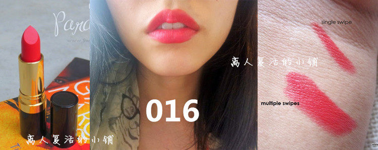 016 paradise pink 粉红色,暖红中带着粉调,实际上色受唇色影响。是亚光款,很干~需要做好唇部护理(缺货)