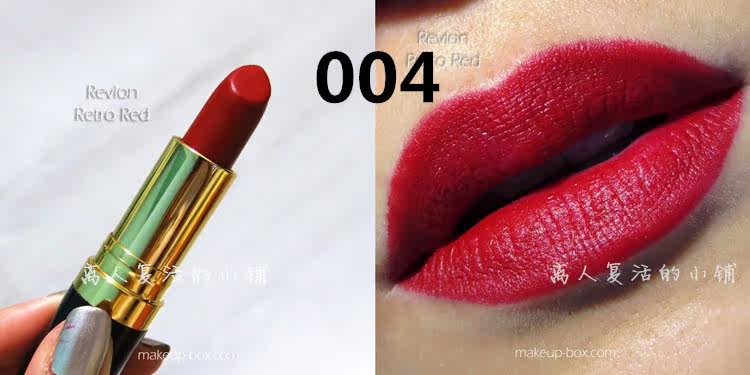 004 retro red 复古红,比006深一点的红色 是亚光款,很干~需要做好润唇护理