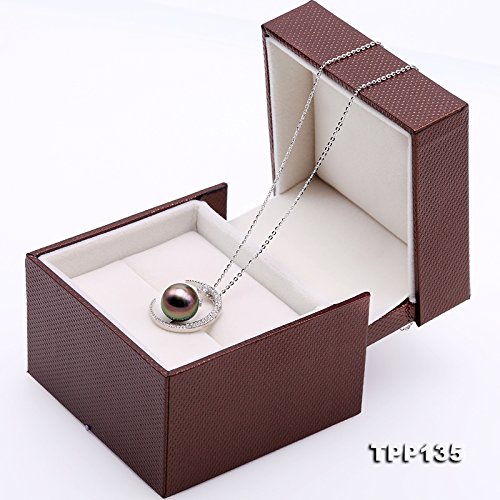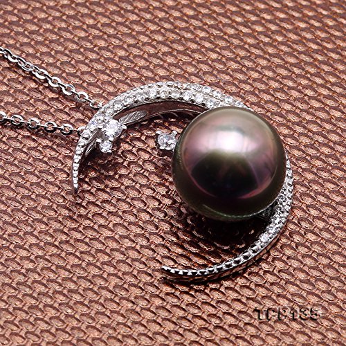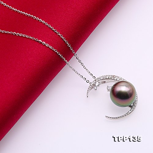 Description *Natural 11.5mm peacock-green Tahitian pearl pendant with sterling silver setting. This pendant is made of high-grade peacock Tahitian pearl with perfect skin.