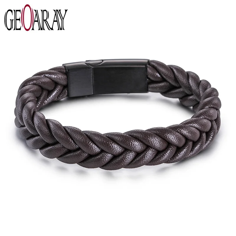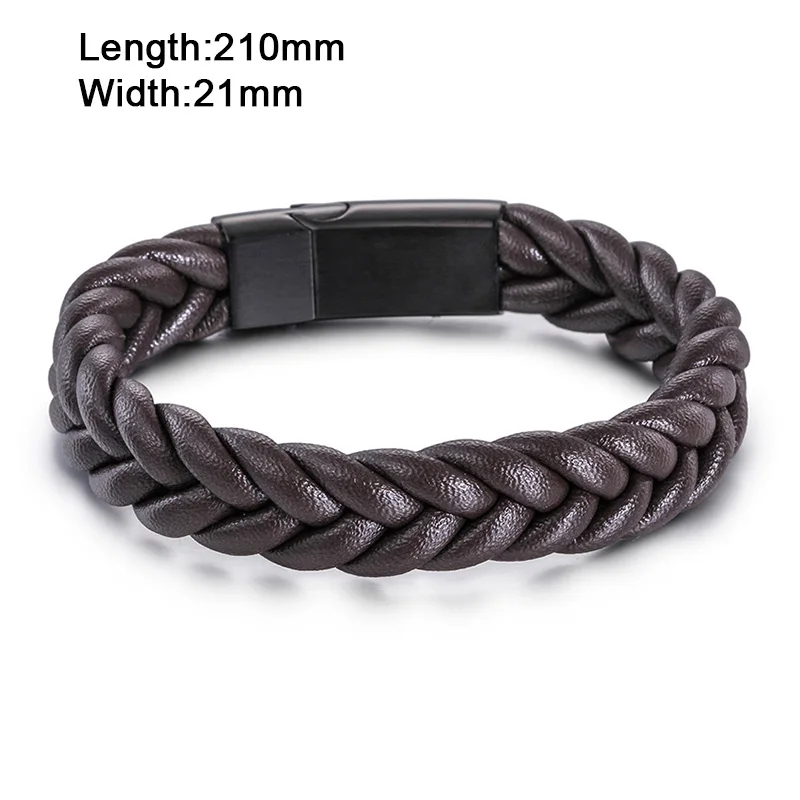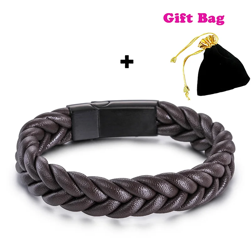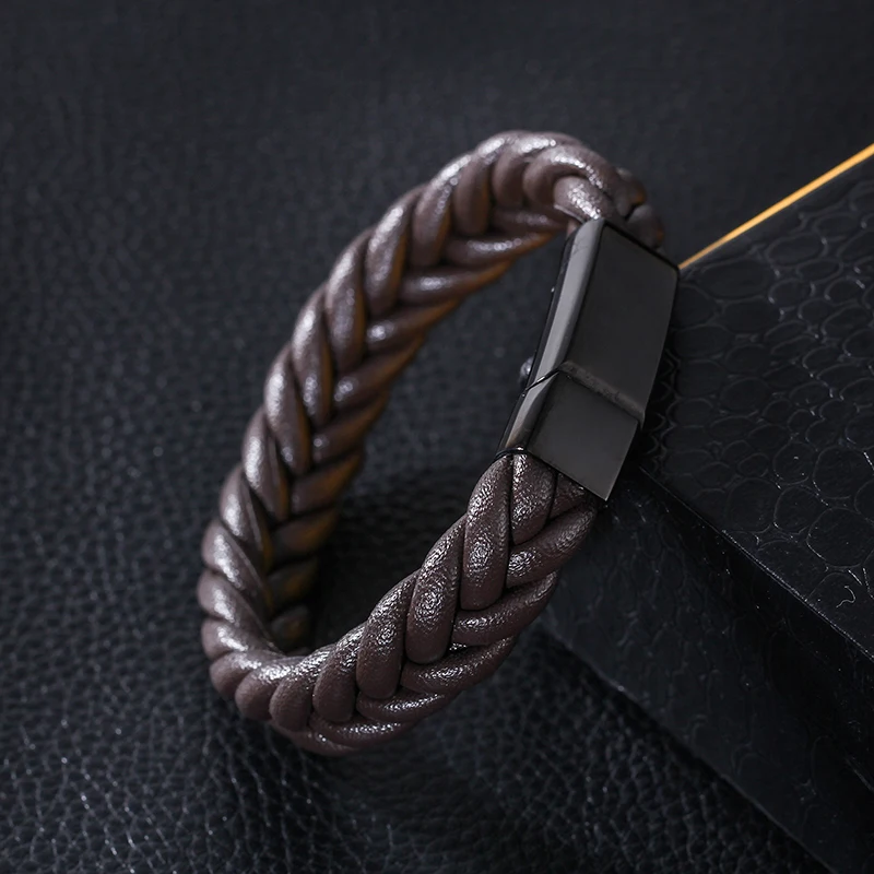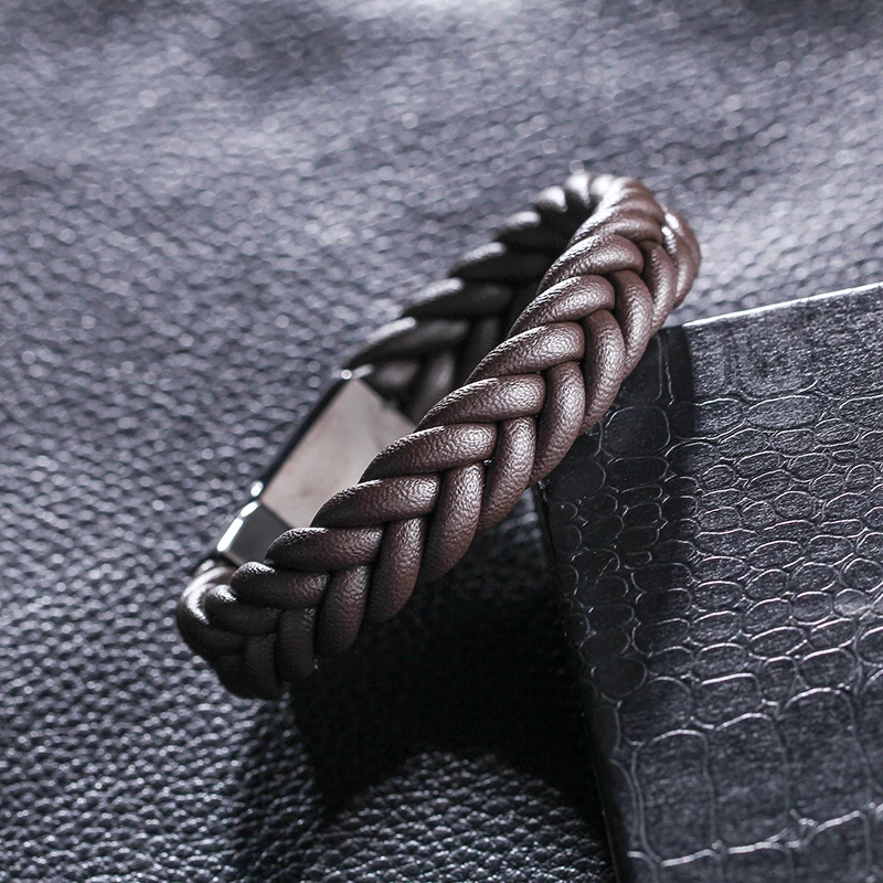 Feture:Black Twist Braided Leather Bracelet For Men