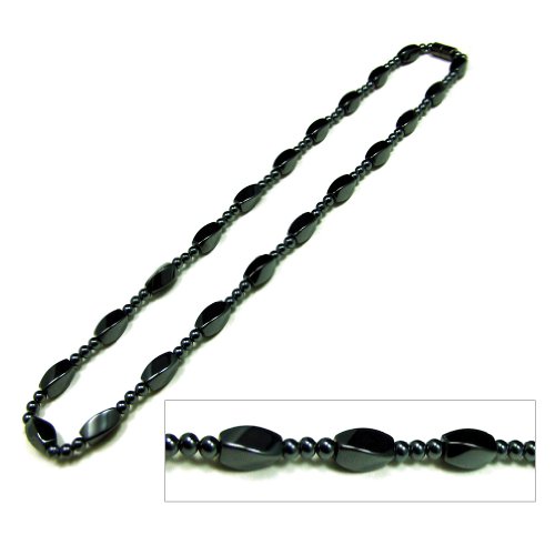 Accents Kingdom ® introduces a stylish magnetic hematite necklace, the piece is set with gun metal black magnetic hematite twist beads and a strong seamless black magnetic clasp enclosure which holds this fabulous piece in style. Each magnetic hematite cylindrical bead measures Approx. 600-700 gauss power. It looks absolutely gorgeous with a pair of jeans or most elegant evening gown, fits perfectly for both men and women.Feature