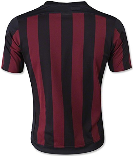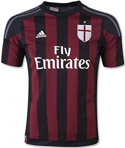 -. Binding : Misc. -. Brand : -. Color : Victory Red, Black, Granite -. Department : youth -. Feature : Black crewneck collar with the trademark three-stripes on both sleeves and shoulders. Embroidered team and brand badges. Heat-applied sponsor logo across chest, team name and slogan across back shoulders and neck / 100% polyester with ClimaCool¨ technology / Blank, no name/number on back -. Label : -. Manufacturer : -. MPN : S11834 -. NumberOfItems : 1 -. PackageQuantity : 1 -. PartNumber : S11834 -. ProductGroup : Apparel -. ProductTypeName : SPORTING_GOODS -. Publisher : -. Size : Large -. Studio : -. Title : AC Milan Kids Home Soccer Jersey (Red-Black)