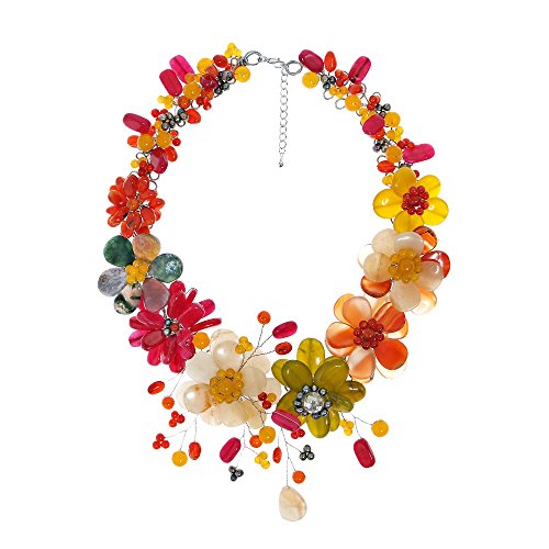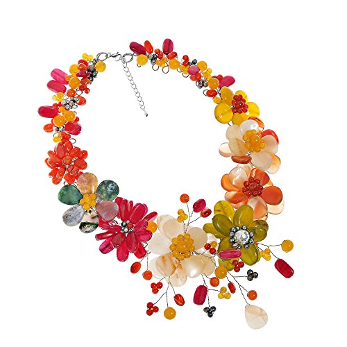 To create this stunning piece, Lai crafted a medley multi-color stones and glass with cultured freshwater pearls (dyed) accents on stainless steel wire to form this floral garland design. The clasp is made of sterling silver but is not stamped 925. Add some beautiful colors to your style for a statement piece. PLEASE NOTE: The handcrafted nature of this product will produce minor differences in design, sizing and weight. Variations will occur from piece to piece, measurements may vary slightly.Includes an original AERAVIDA organza jewelry pouch (comes in various colors), also handmade by our Artisans. Perfect for gift giving to someone special or keep for yourself!