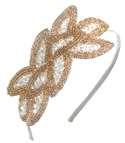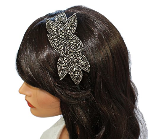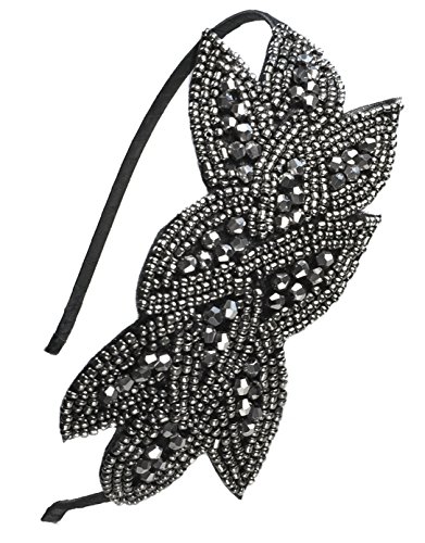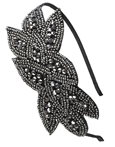 -. Binding : Misc. -. Brand : CB Accessories -. Department : Womens -. Feature : Headpiece inspired in 1920's fashion for adding a touch of class to any outfit / Beaded leaf portion measures 2 inches wide x 5 1/2 inches long / Hairband measures 1/4 inch wide x 15 inches long and it's not too tight making it very comfortable to wear / Metal band covered in fabric for a nicer look and extra comfort / Great accessory for everyday wear or for a special event -. NumberOfItems : 1 -. ProductGroup : Beauty -. ProductTypeName : BEAUTY -. Title : Beaded Flapper Headband Leaf Bunch Vintage Inspired Hairband Hair Accessory, Black