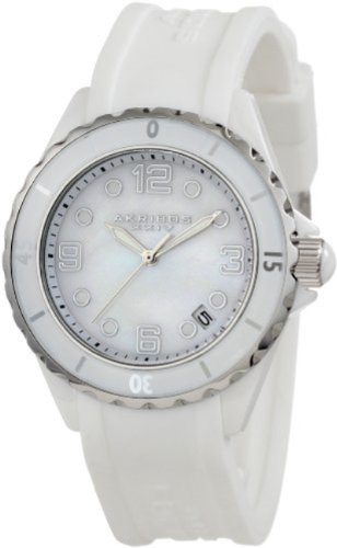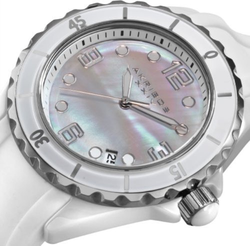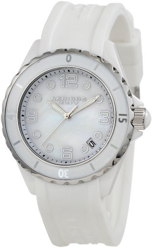 -. Title : Akribos XXIV Women's AK502WT Ceramic Case with White Rubber Strap Watch