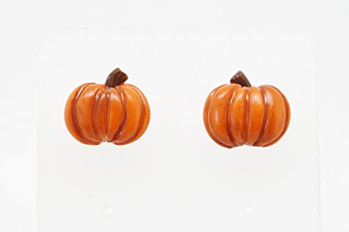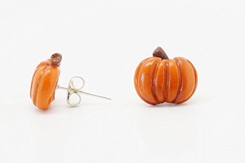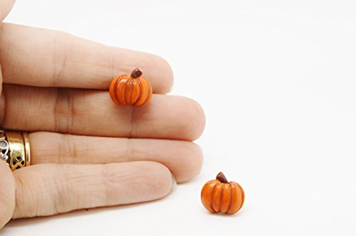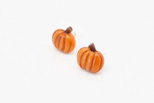 -. Title : Plain pumpkin stud earrings made from polymer clay