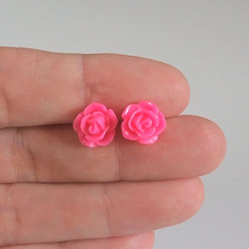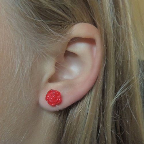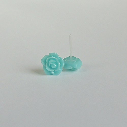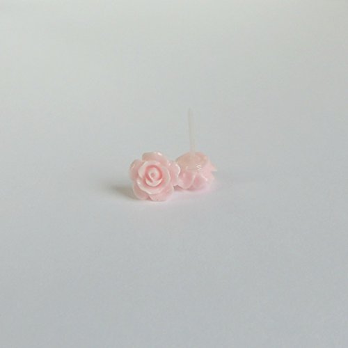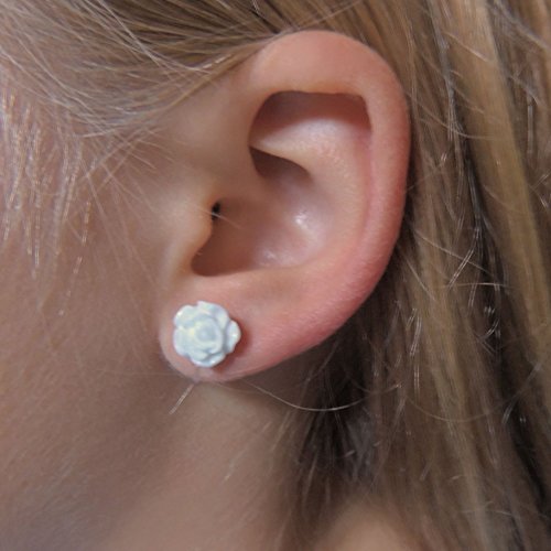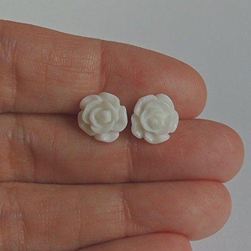 -. Title : 10mm White Rose Earrings on Plastic Posts for Metal Sensitive Ears