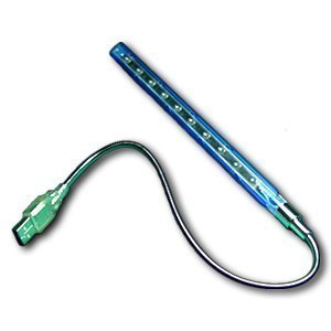 Lighten up! Plug this small lamp into your USB port and see what you're doing. The cable is sturdy and flexible, and will hold the shape you bend it into, so you can position the light where you need it. Soft illumination won't disturb others.