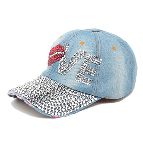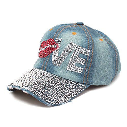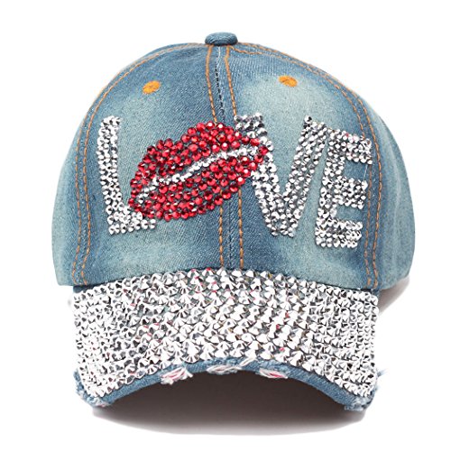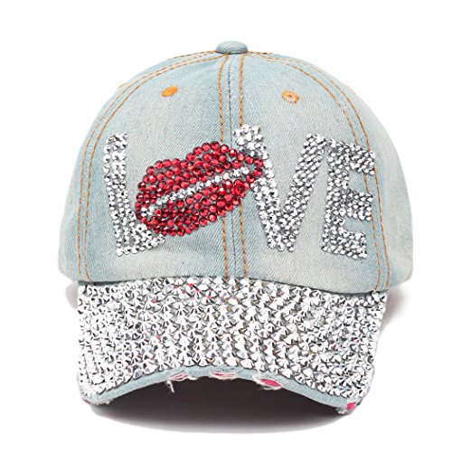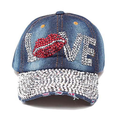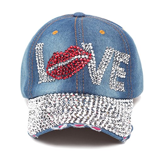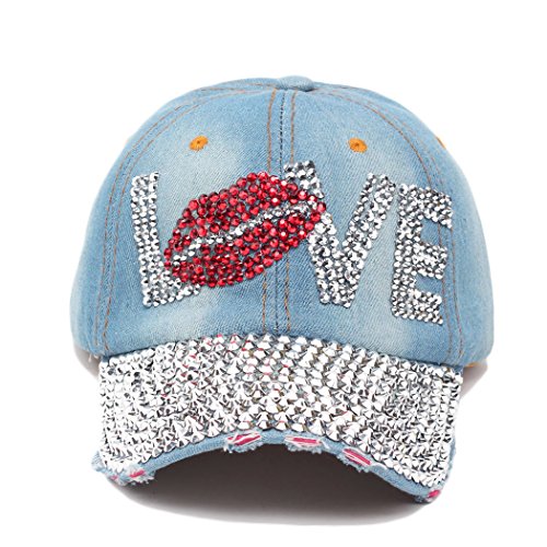 Raylans Fashion Women Bling Studded Rhinestone Crystal LOVE Lips Baseball Caps Hats