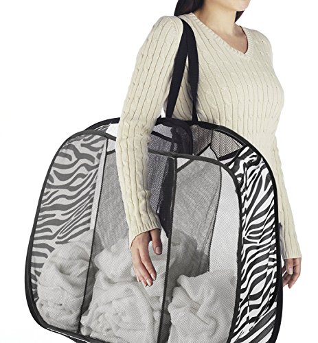 Studio : Whitmor Publisher : Whitmor Binding : Kitchen Product Description Whitmor's Pop Fold Laundry Bag features 2 easy grip handles for quick transport, collapses when not in use and is made from a mesh and moisture proof polyester. This hamper comes in the stylish Zebra patterns to match your Whitmor Zebra collection of laundry products. 0