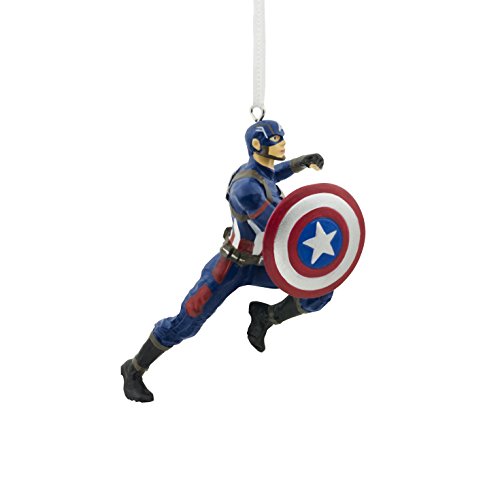 -. Feature : Boxed Christmas tree ornament by Hallmark. / Satin ribbon hanger. / Perfect gift for fans of Marvel Avengers and Captain America.