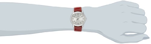 -. Feature : Quartz analog movement with three hands / Round silver-tone brass case with sunray finish silver-tone dial and full Arabic numerals / Durable mineral crystal protects watch from scratches / Red genuine patent leather strap / Water resistant to 99 feet (30 M): withstands rain and splashes of water, but not showering or submersion
