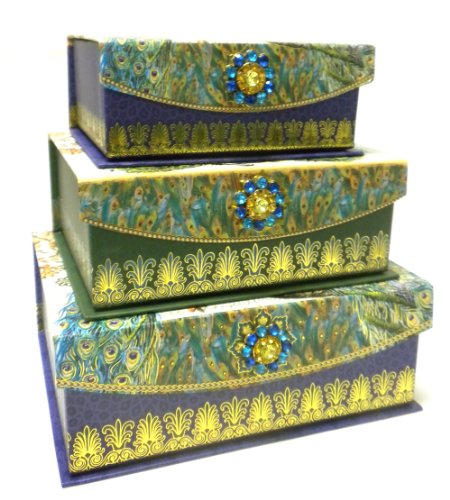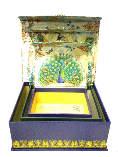 Punch Studio Brooch Flap Trinket Nesting Box Set of 3 - Royal Peacocks