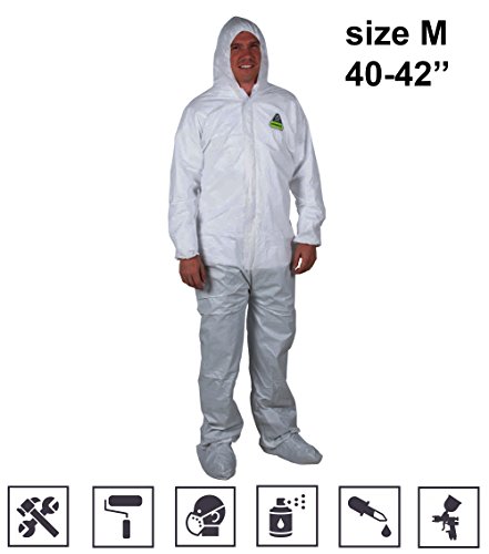 Coveralls for Men Women Disposable Overall Unionalls White Microporous Anti-Static Anti Spray Painting Paint Dust Protection Coverall with Front Zipper Hood UNISEX size M if Your Wear 40-42