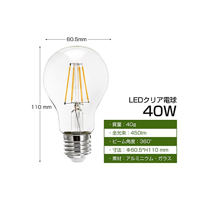 원본상품명: LED電球 フィラメント E26口金 クリア電球 電球色 ハロゲン色 ledクリア電球