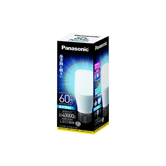 파나소닉 LED전구 물림쇠 직경26mm 전구60W 형상당 주광색상당(8.4W) 일반 전구T형 타입 밀폐형 기구 대응 LDT8DGZ60SW