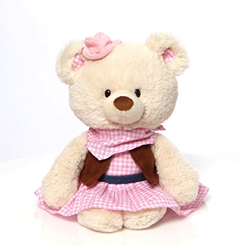 -. Feature : Dandi cowgirl teddy bear features pink gingham dress, gingham handkerchief, pink hat, and brown imitation suede vest / Rootin Tootin Cowgirl collection celebrates the spirit of the west / Surface-washable / Great for ages 1+ / 13 inch length (33 cm) / One of the first companies to make teddy bears, GUND was founded in 1898 by Adolph Gund in Norwalk, Connecticut. Now known not only for teddy bears, but a whole menagerie of plush toys, giving a child one of these sweet creatures will provide companionship through their early years.