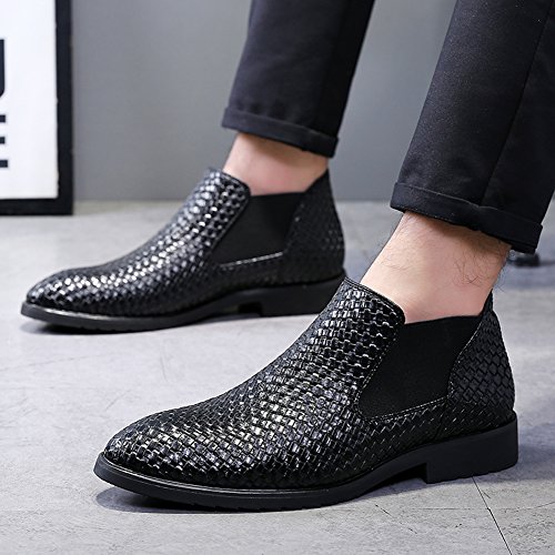 (Santimon)/Men's/Boots/DIRECT FROM USA/Santimon Chelsea Boots Men Patent Leather Weave Slip on Outdoor Formal Dress Casual Ankle Shoes...